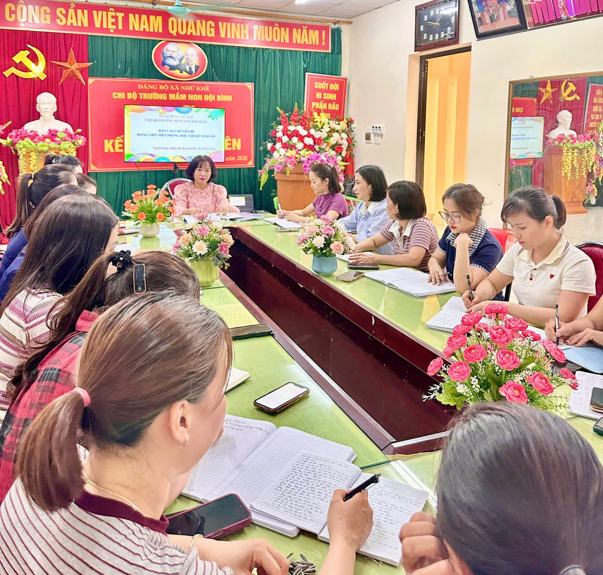 Chi bộ Trường Mầm non Đội Bình sinh hoạt chuyên đề.