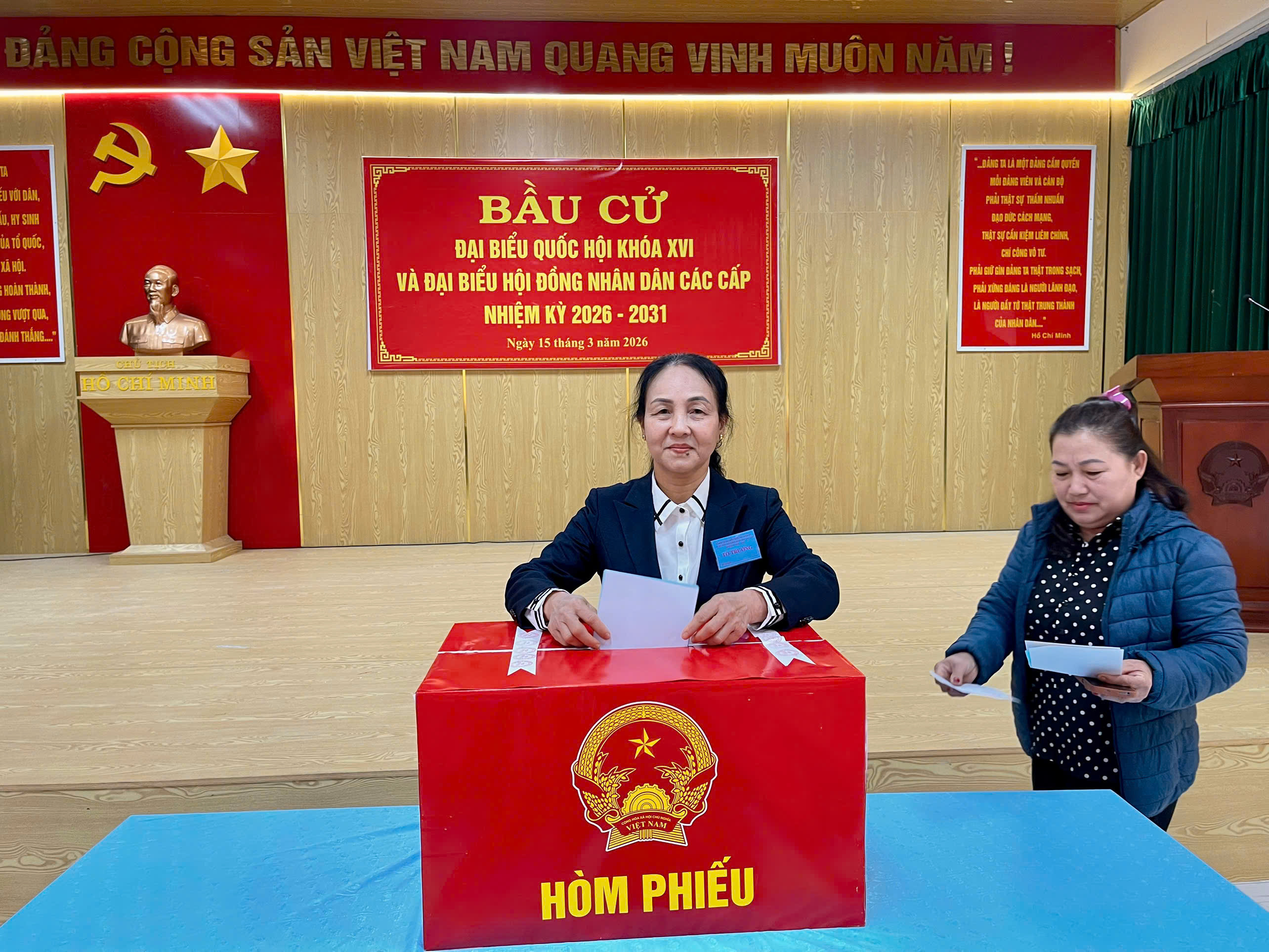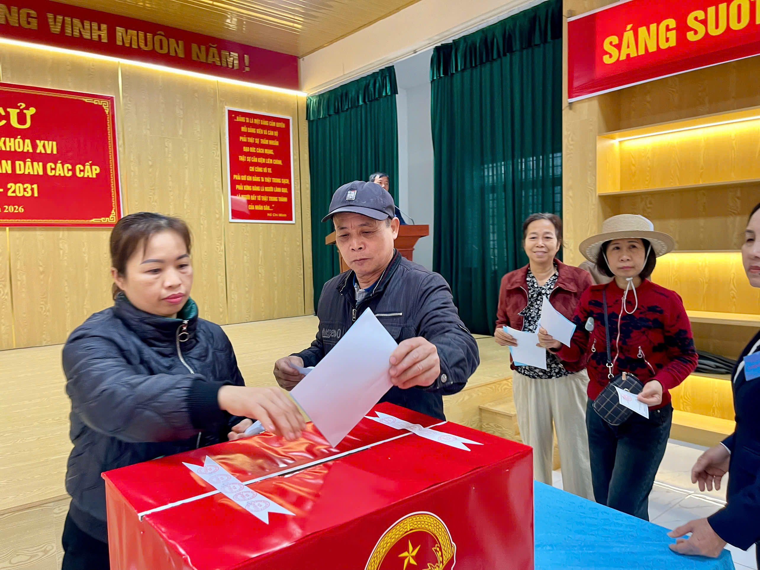 Đồng chí Nguyễn Hữu Phương, Bí thư Đảng uỷ, Chủ tịch HĐND xã dự khai mạc bầu cử đại biểu Quốc hội khóa XVI và đại biểu HĐND các cấp, nhiệm kỳ 2026 – 2031 tại khu vực bỏ phiếu số 04, khu dân cư Z129.