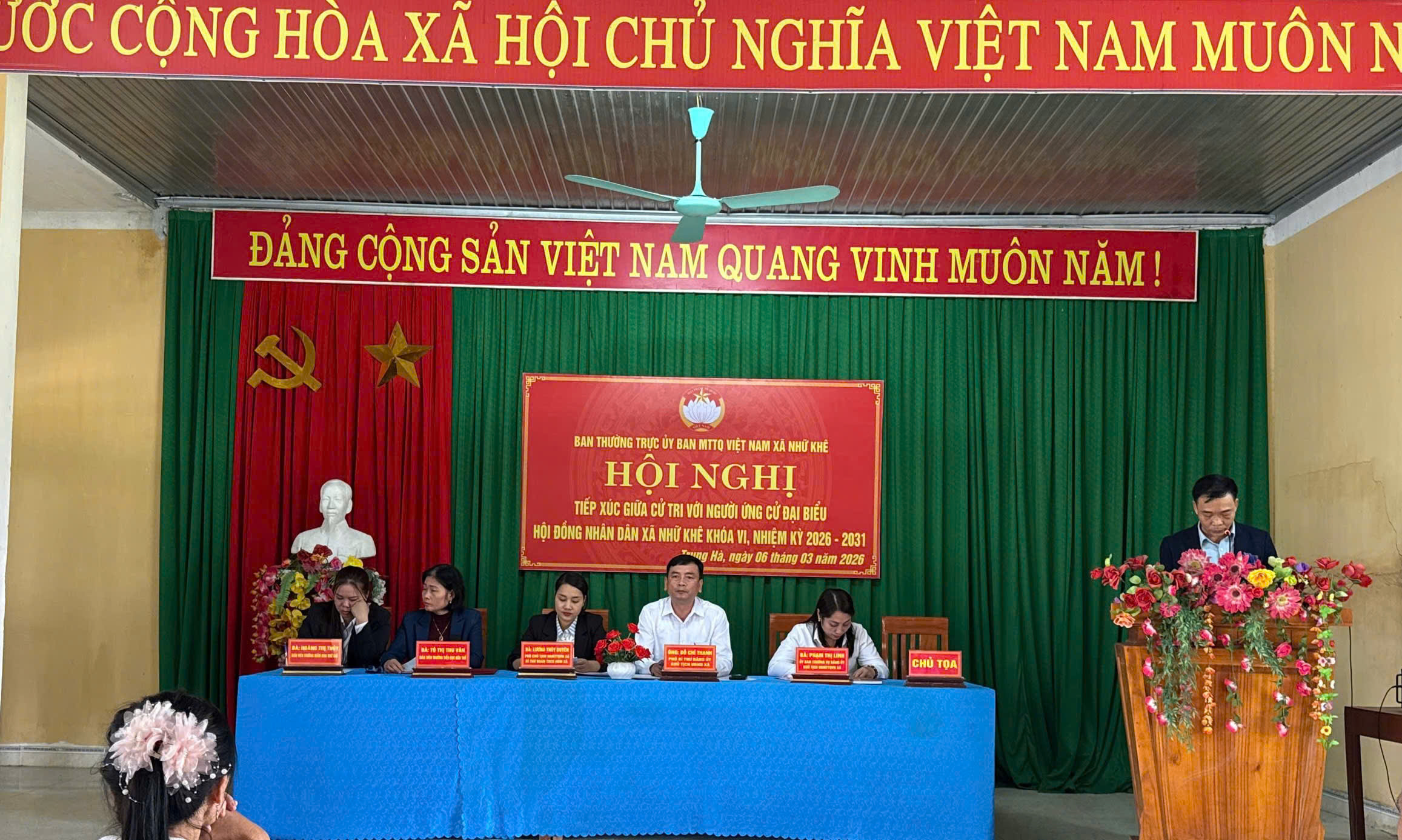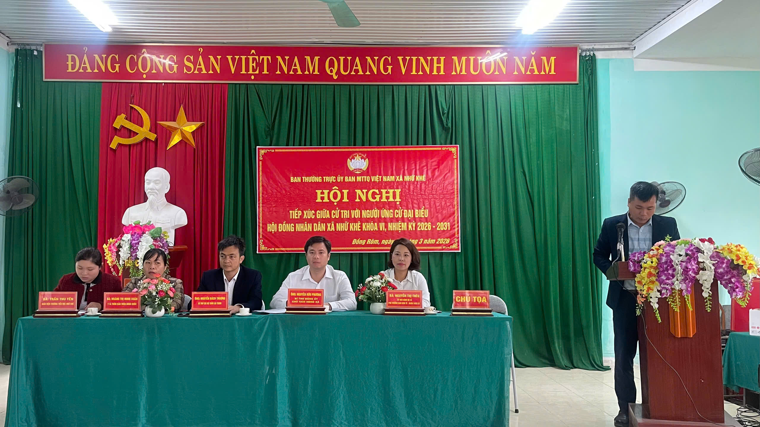 Các ứng cử viên Đại biểu HĐND xã Nhữ Khê nhiệm kỳ 2026 - 2031 tiếp xúc cử tri ở các điểm bầu cử.