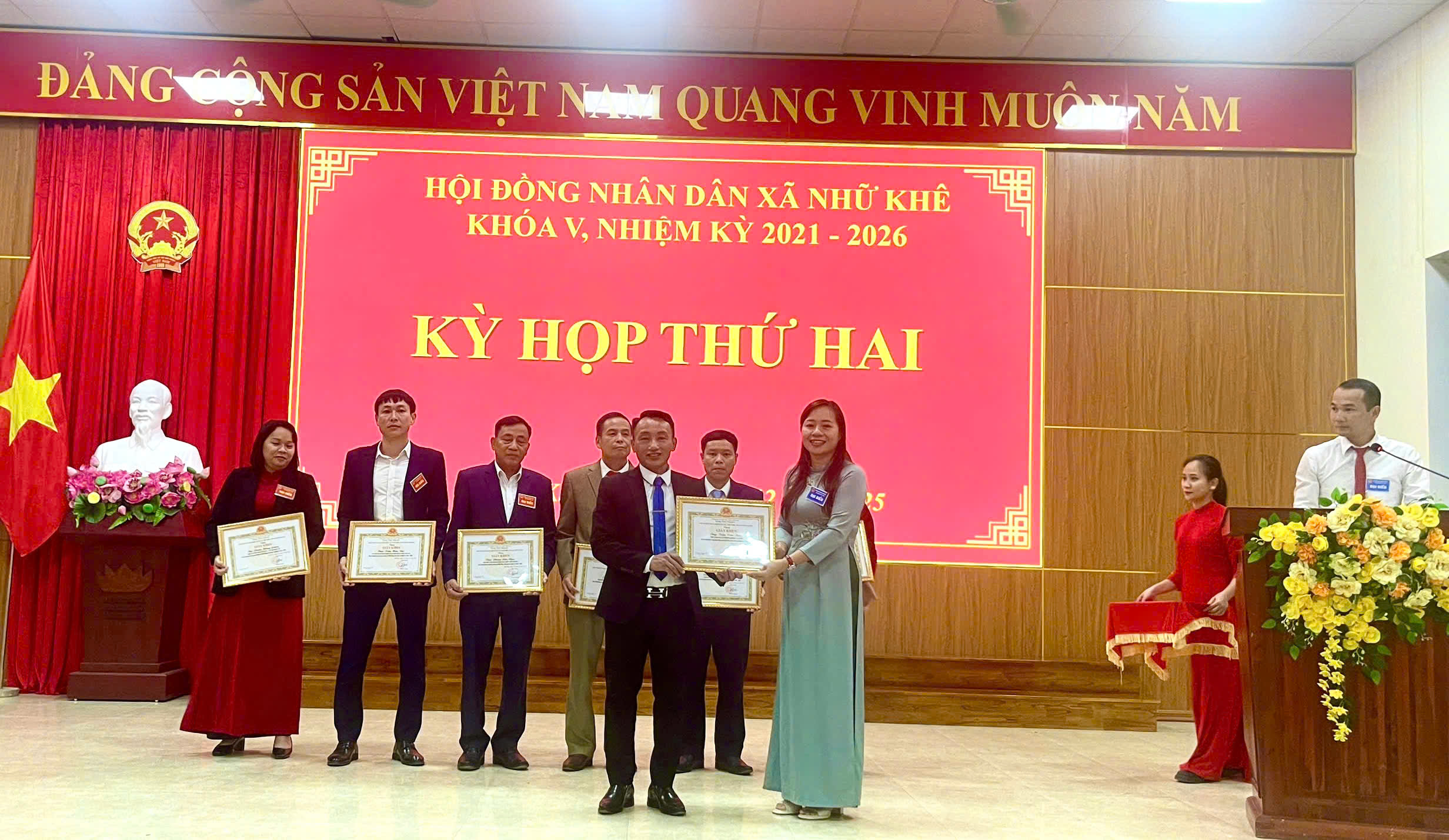 ✅ Tại kỳ họp đã công bố Quyết định khen thưởng của Chủ tịch Ủy ban nhân dân xã cho cho 03 tập thể và 13 cá nhân có thành tích xuất sắc trong hoạt động của Hội đồng nhân dân xã Nhữ Khê khoá V, nhiệm kỳ 2021 - 2026.