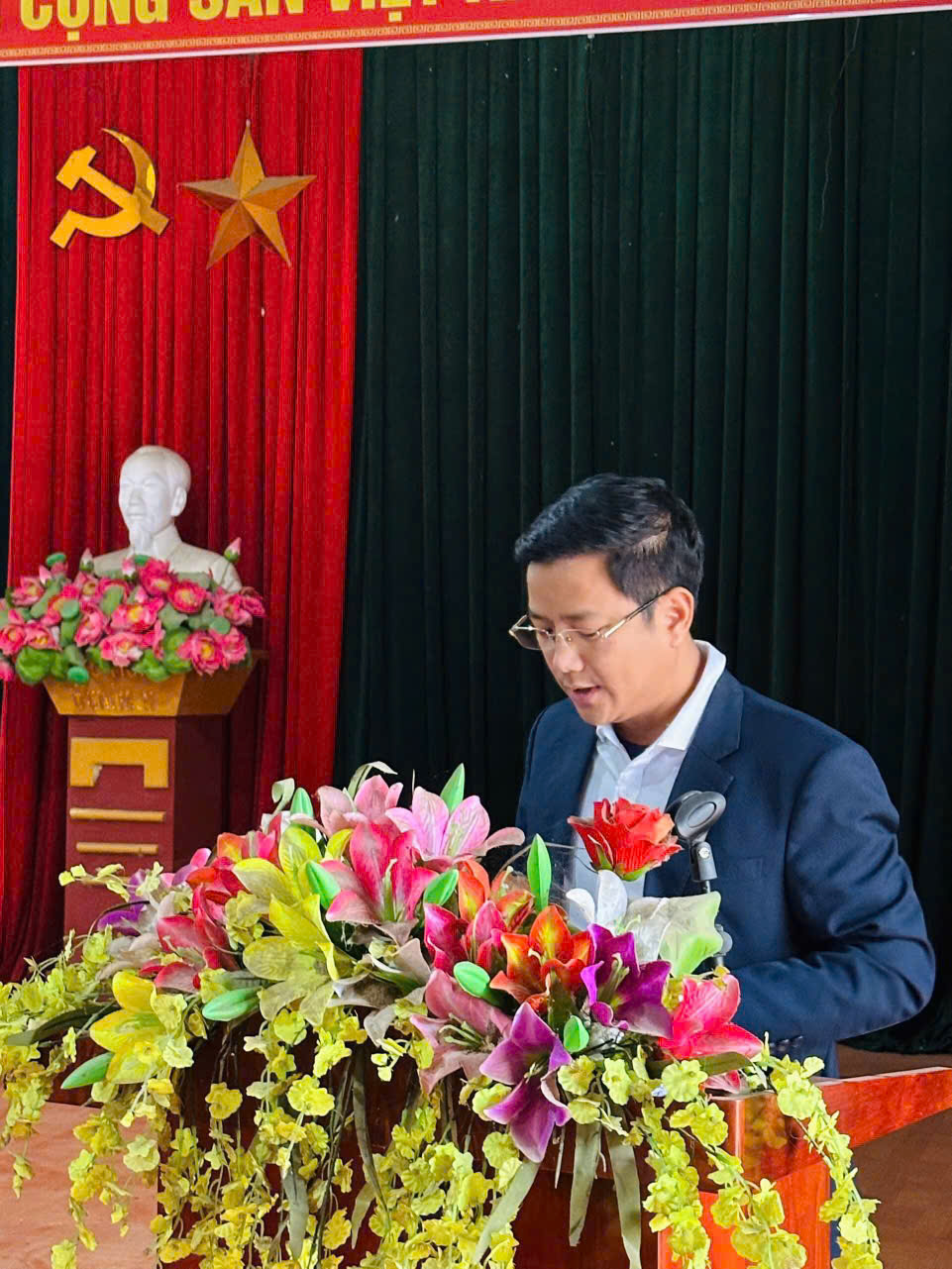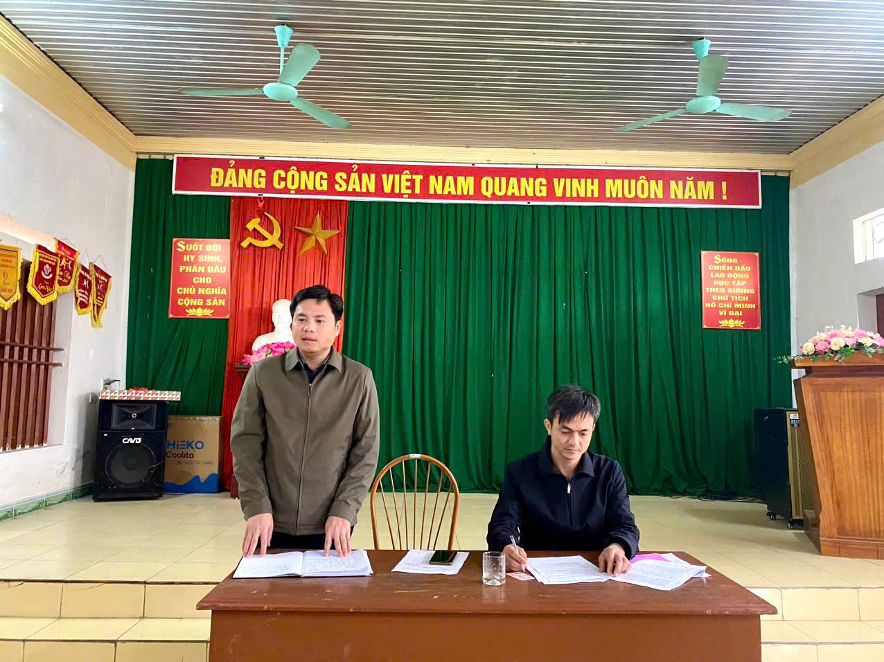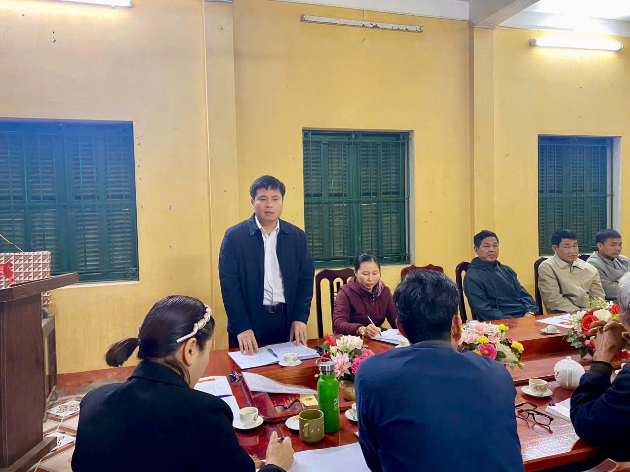 Đồng chí Nguyễn Hữu Phương, Bí thư Đảng ủy, Chủ tịch HĐND xã dự lễ kết nạp Đảng viên mới và sinh hoạt chi bộ thôn Hòa Bình