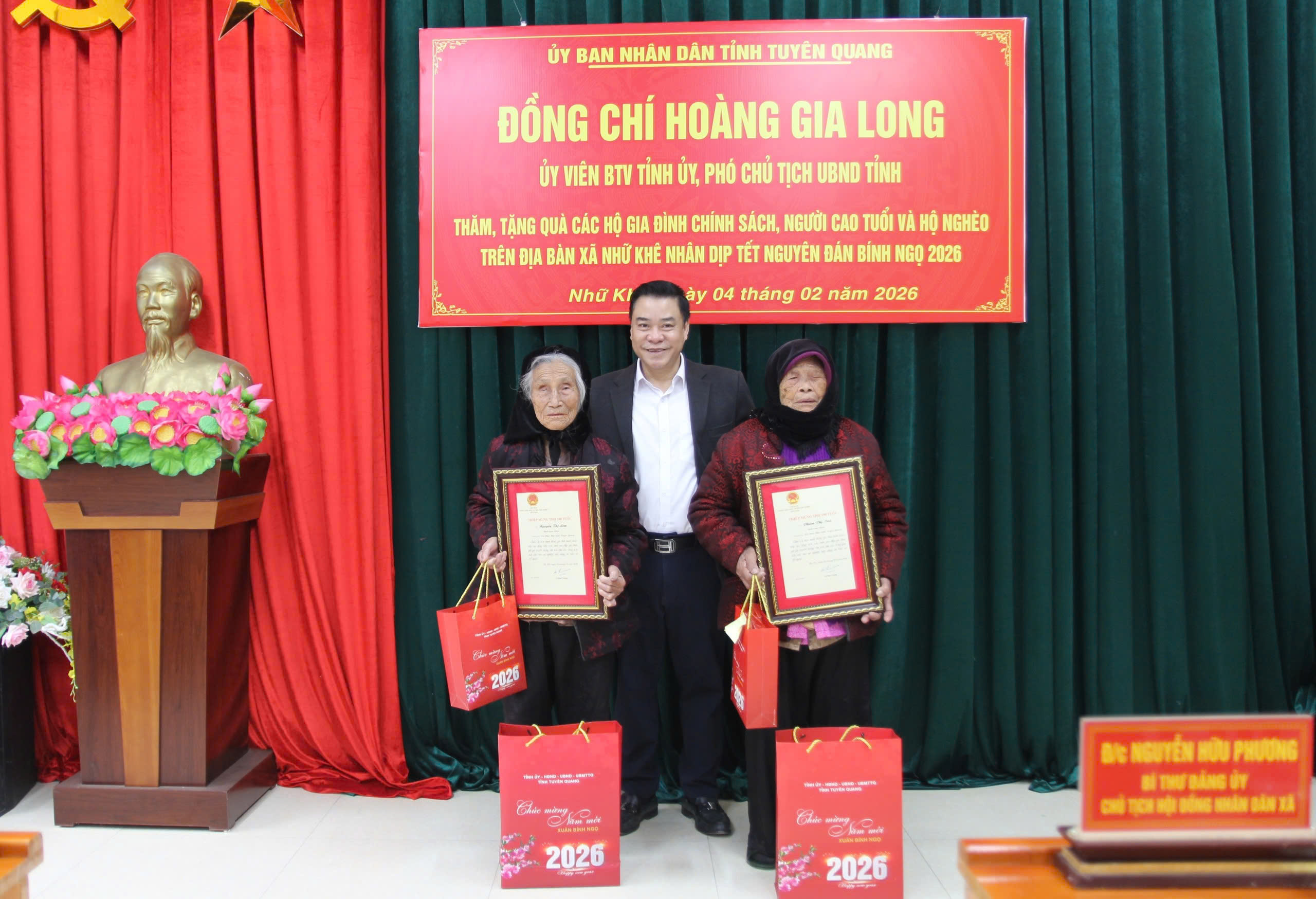 Nhân dịp này, đồng chí Phó Chủ tịch UBND tỉnh và các đồng chí thường trực Đảng ủy xã đã trao tặng 14 suất quà, trong đó có 10 suất cho các hộ nghèo, 2 suất cho gia đình chính sách và 2 suất cho các cụ tròn 100 tuổi. Những phần quà là sự động viên kịp thời, thể hiện trách nhiệm và tình cảm của các cấp, các ngành đối với các đối tượng chính sách, người cao tuổi và hộ nghèo. Qua đó thể hiện sự quan tâm của Đảng, Nhà nước và chính quyền địa phương góp phần mang đến một mùa xuân vui tươi, đầm ấm cho Nhân dân xã Nhữ Khê với tinh thần “không để ai bị bỏ lại phía sau”.