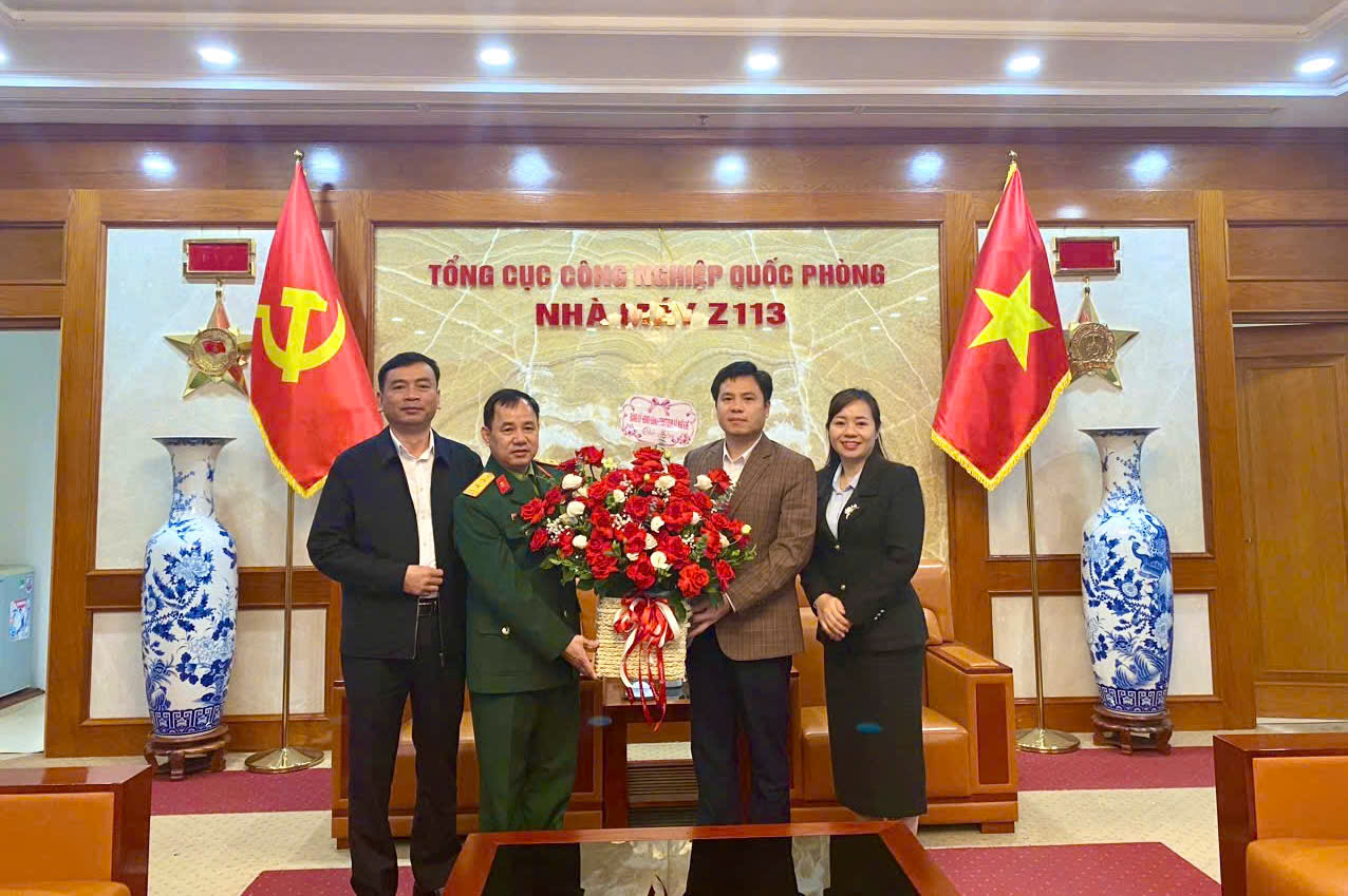 Thường trực Đảng ủy xã tặng hoa chúc mừng nhà máy Z113.