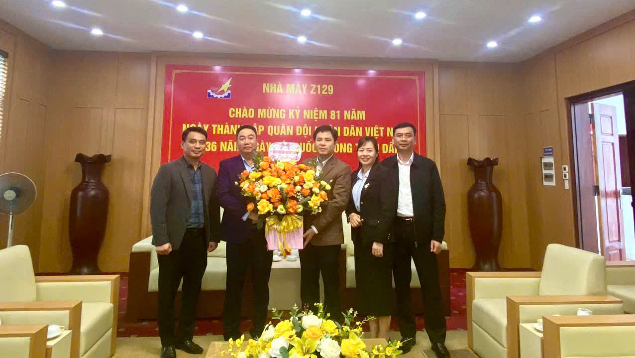 Thường trực Đảng ủy xã tặng hoa chúc mừng nhà máy Z129.