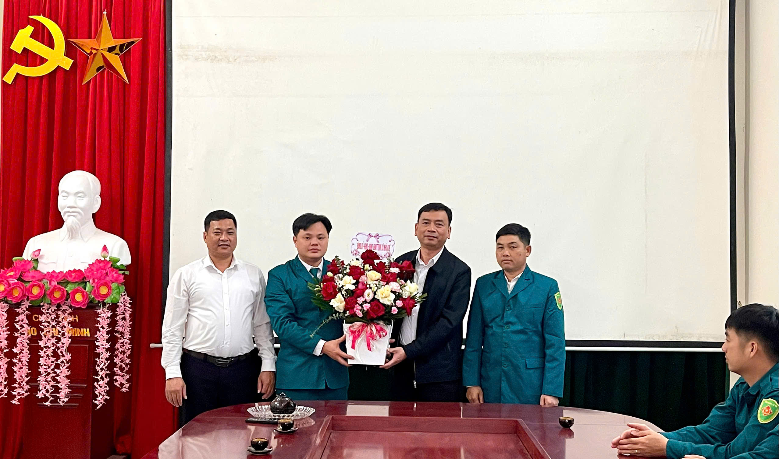 Lãnh đạo xã tặng hoa chúc mừng Ban chỉ huy phòng thủ khu vực 5