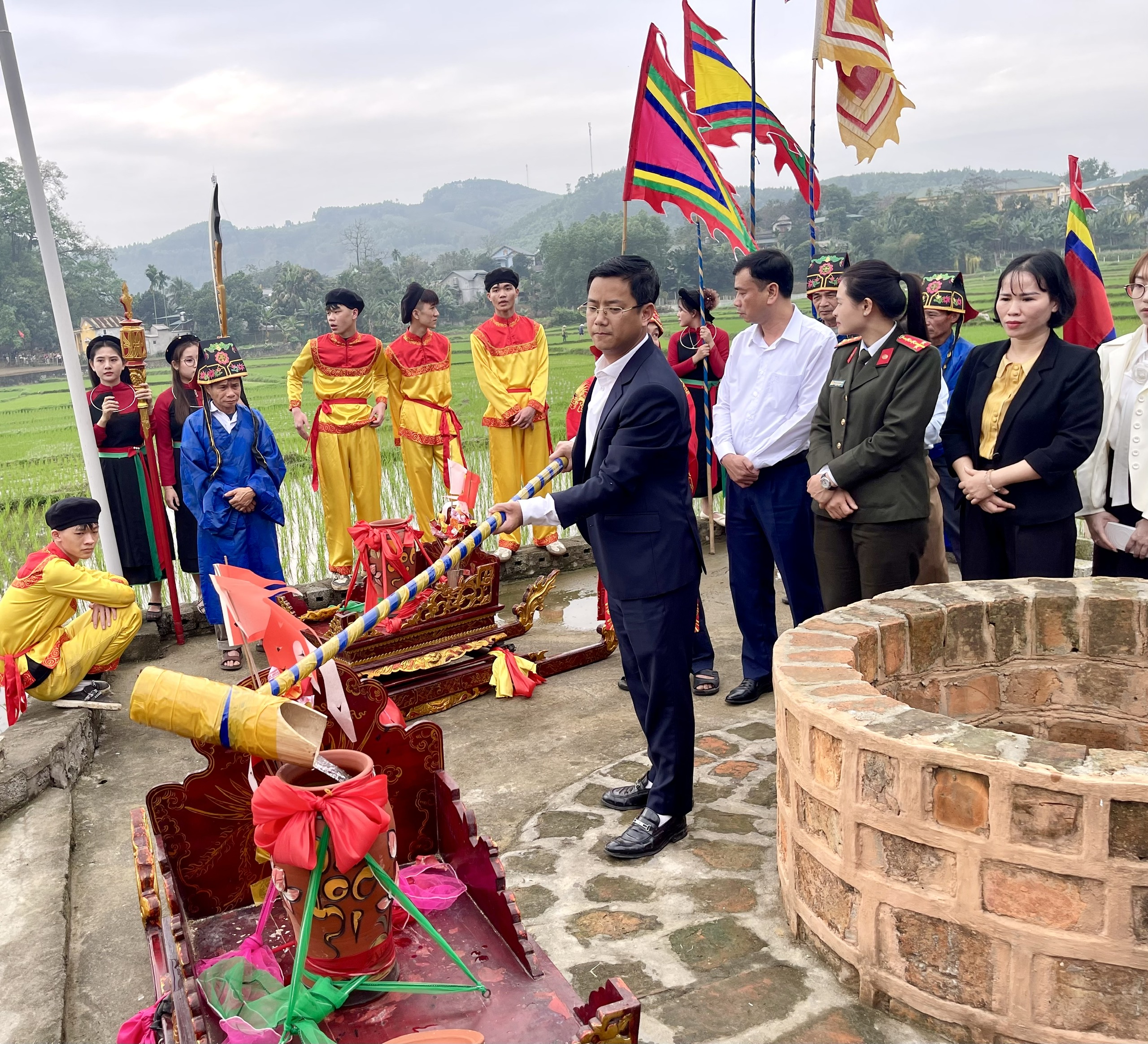 Lễ rước nước: Nước được rước từ giếng làng về Đình để thực hiện nghi thức tắm tượng, thể hiện sự thanh khiết, cầu mong mưa thuận gió hòa, quốc thái dân an.