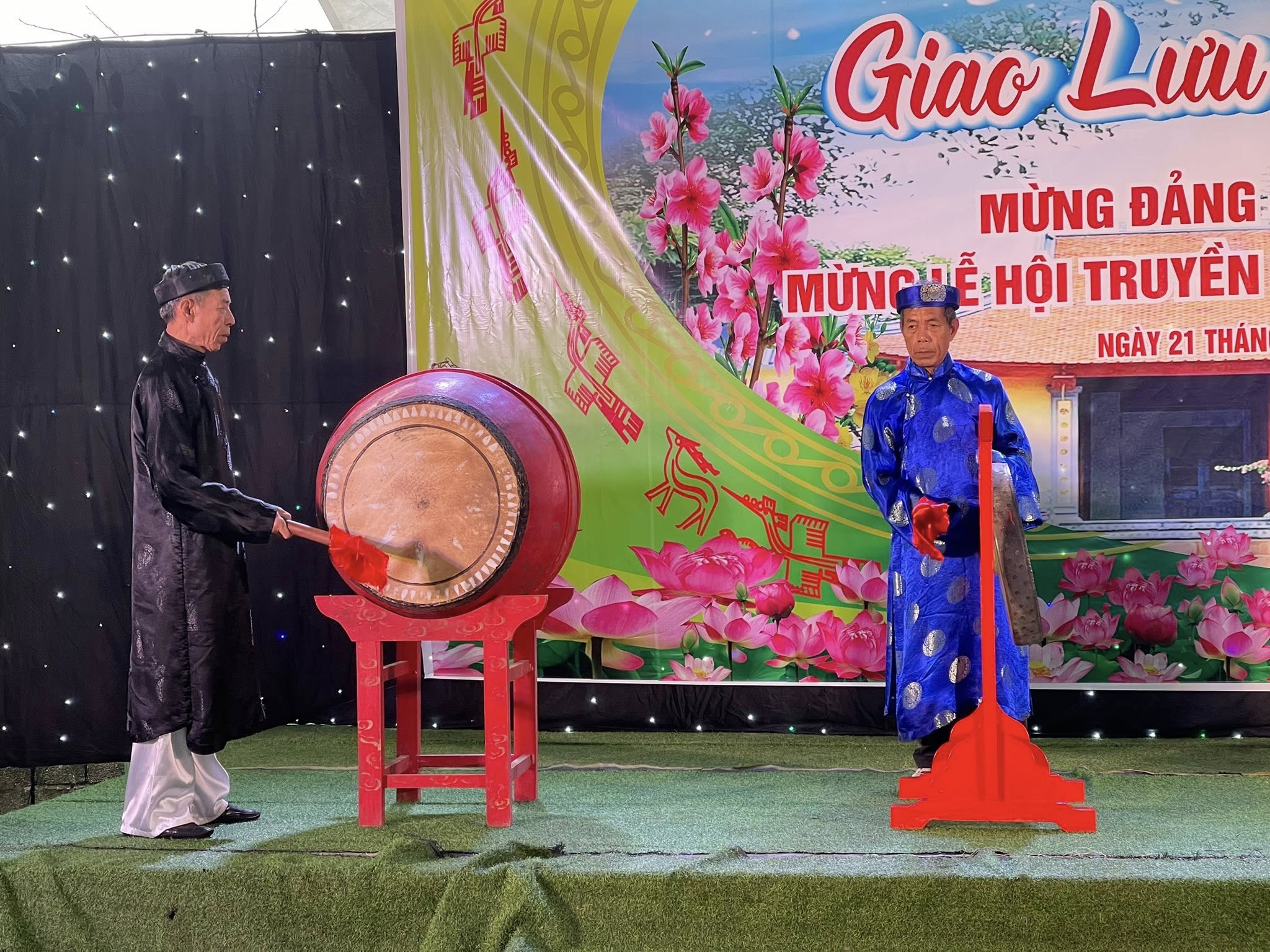 Đồng chí Trần Văn Tạo, Trùm Đình làng An Thịnh đánh trống khai mạc lễ hội.