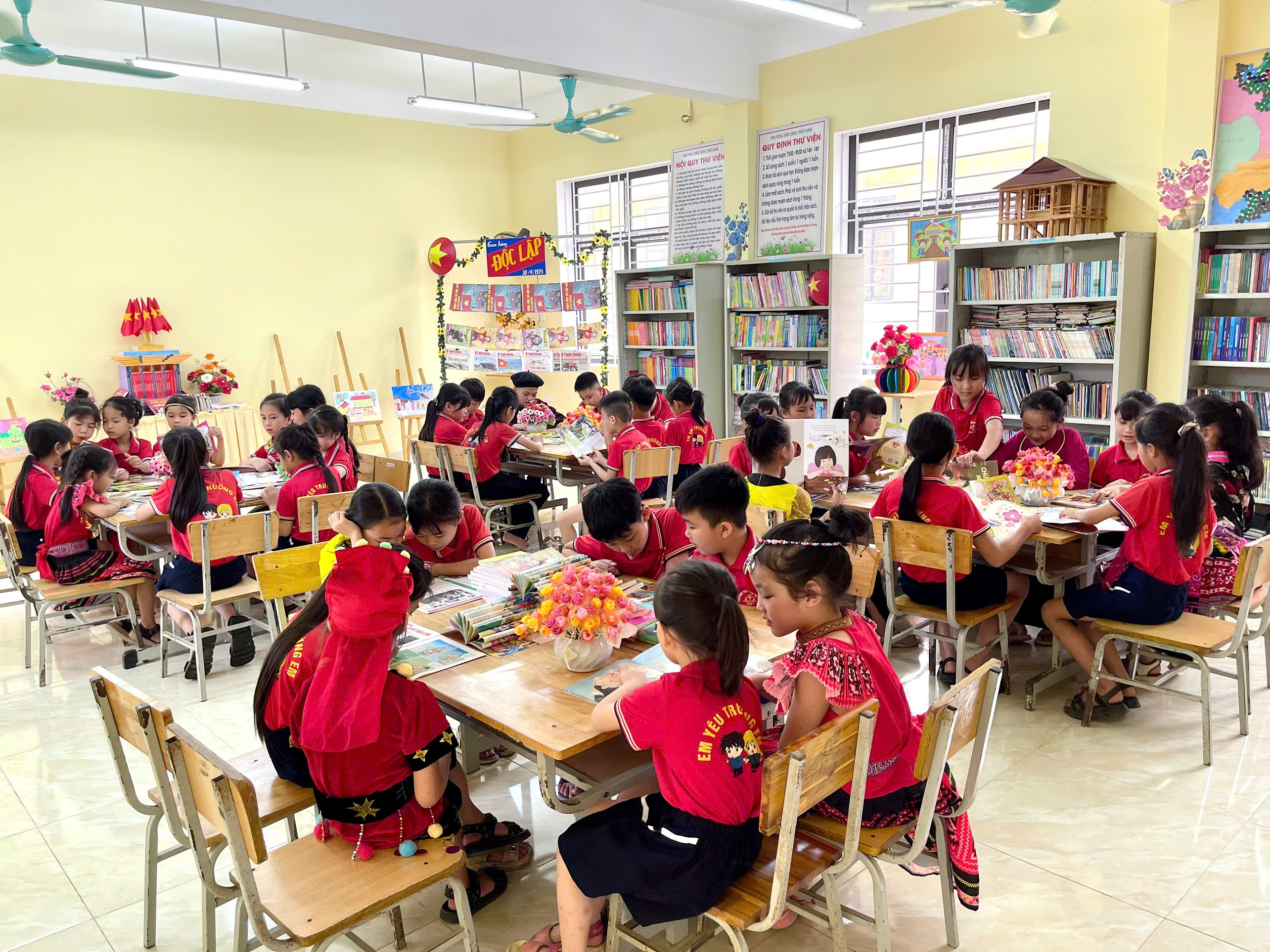 Nhà trường luôn khuyến khích các em học sinh dành thời gian đọc sách mỗi ngày, lựa chọn những cuốn sách hay, phù hợp với lứa tuổi để nâng cao kiến thức và phát triển toàn diện. Bên cạnh đó, nhà trường tiếp tục duy trì và phát huy hiệu quả các hoạt động như: xây dựng góc đọc sách trong lớp học, tổ chức các buổi giới thiệu sách, chia sẻ sách hay, tạo môi trường thuận lợi để học sinh tiếp cận với sách và hình thành thói quen đọc sách lâu dài.