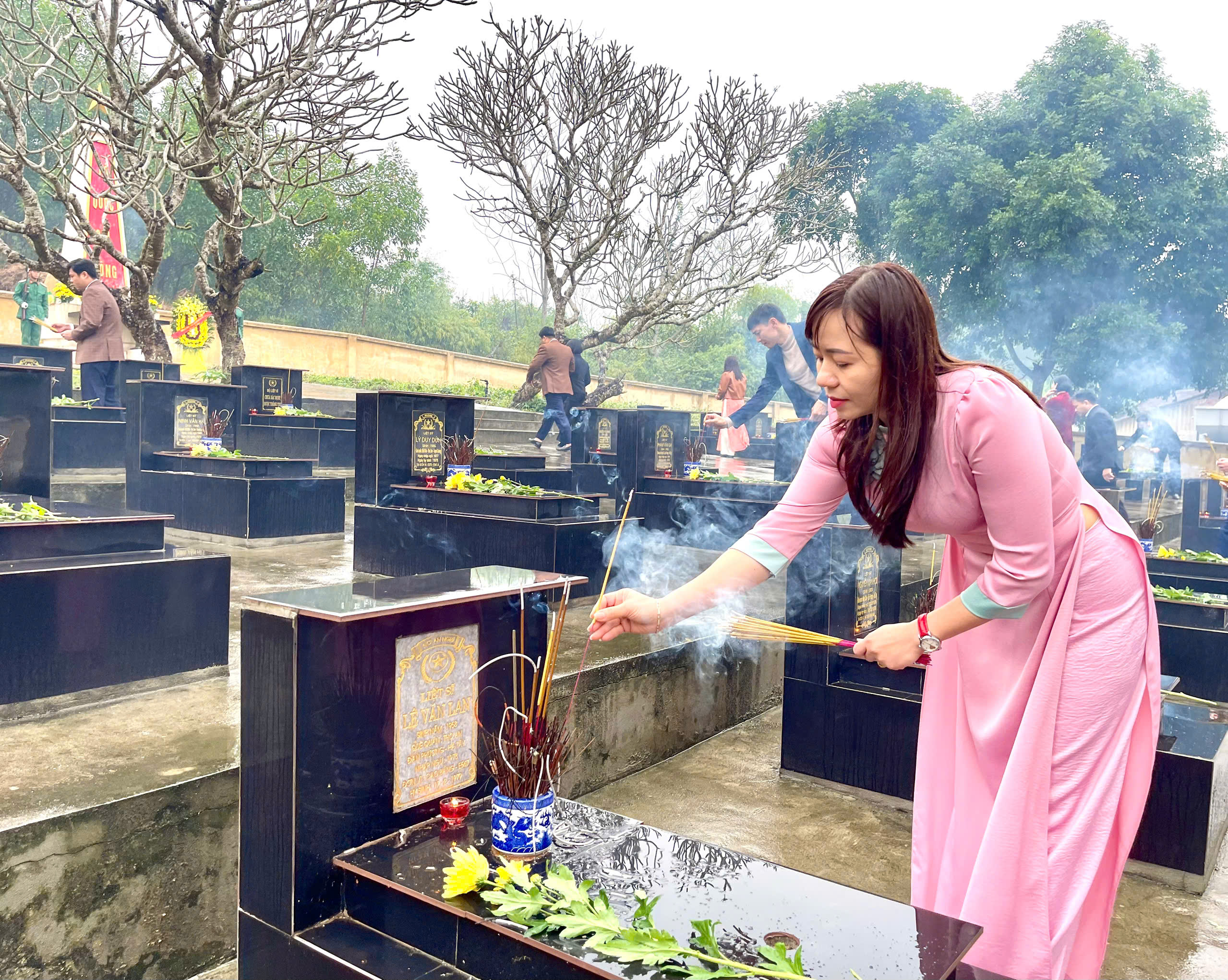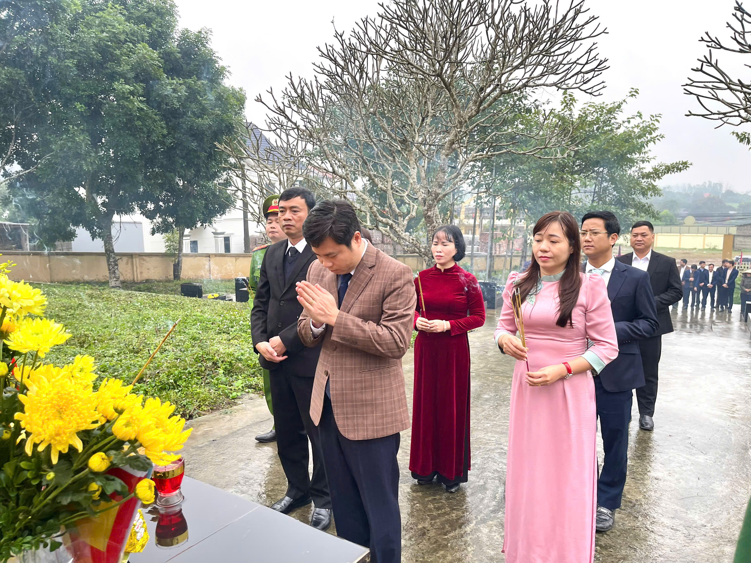Trong không khí thiêng liêng, trang trọng, các đại biểu đã kính cẩn đặt vòng hoa, dâng hương tưởng niệm và dành phút mặc niệm bày tỏ lòng tri ân sâu sắc đối với các Anh hùng liệt sĩ – những người con ưu tú của quê hương, những chiến sĩ Bộ đội Cụ Hồ đã anh dũng chiến đấu, không tiếc máu xương, hiến dâng trọn tuổi xuân cho sự nghiệp giải phóng dân tộc và thống nhất non sông.