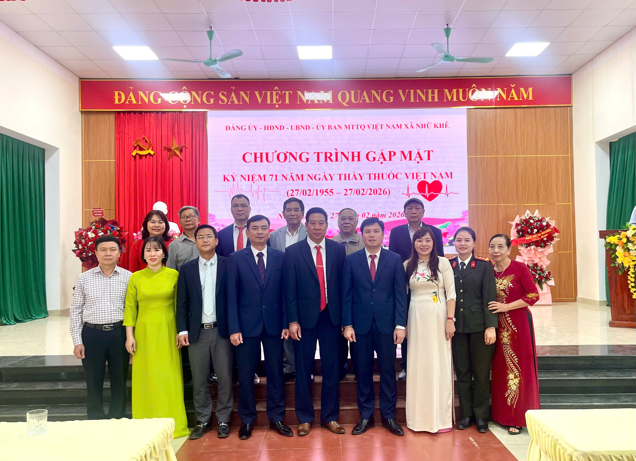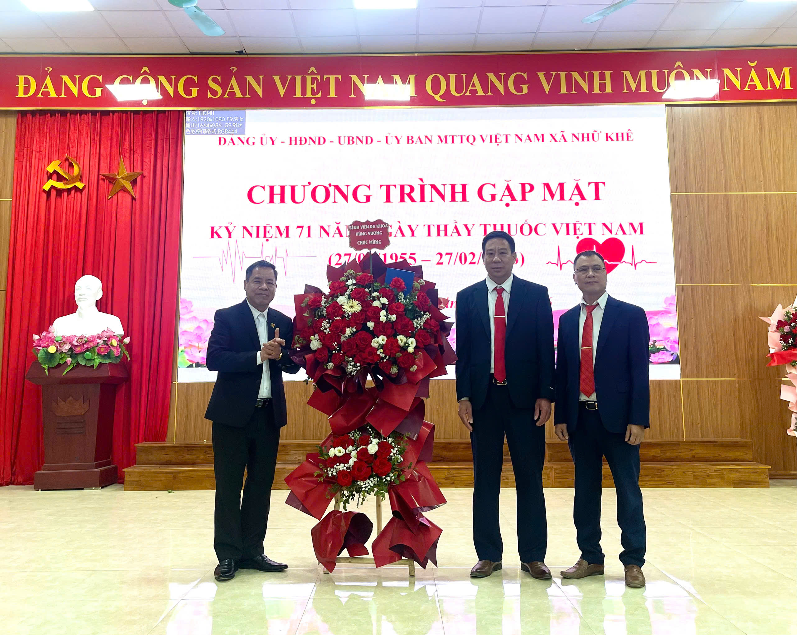 Đảng ủy, HĐND, UBND, UBMTTQ xã tặng hoa chúc mừng Trạm Y tế xã Nhữ Khê.
