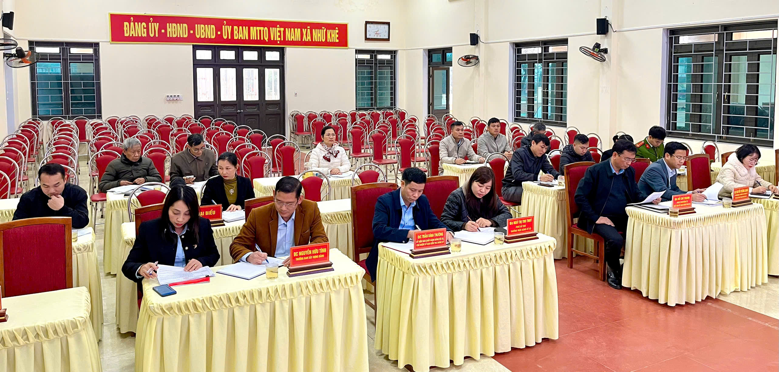 Dự hội nghị có các đồng chí: Ngô Thị Thu Thủy, Phó Bí thư Thường trực Đảng ủy xã; Đỗ Chí Thanh, Phó Bí thư Đảng ủy, Chủ tịch UBND xã, Chủ tịch Ủy ban Bầu cử xã; Nguyễn Trường Giang, Ủy viên Ban Thường vụ Đảng ủy, Phó Chủ tịch UBND xã; cùng lãnh đạo các ban xây dựng Đảng, Ủy ban MTTQ xã và Phòng Văn hóa xã. Hội nghị do đồng chí Phạm Thị Linh, Ủy viên Ban Thường vụ Đảng ủy, Chủ tịch Ủy ban MTTQ xã và đồng chí Lê Văn Bộ, Phó Chủ tịch Ủy ban MTTQ xã, Chủ tịch Hội Cựu chiến binh xã đồng chủ trì.