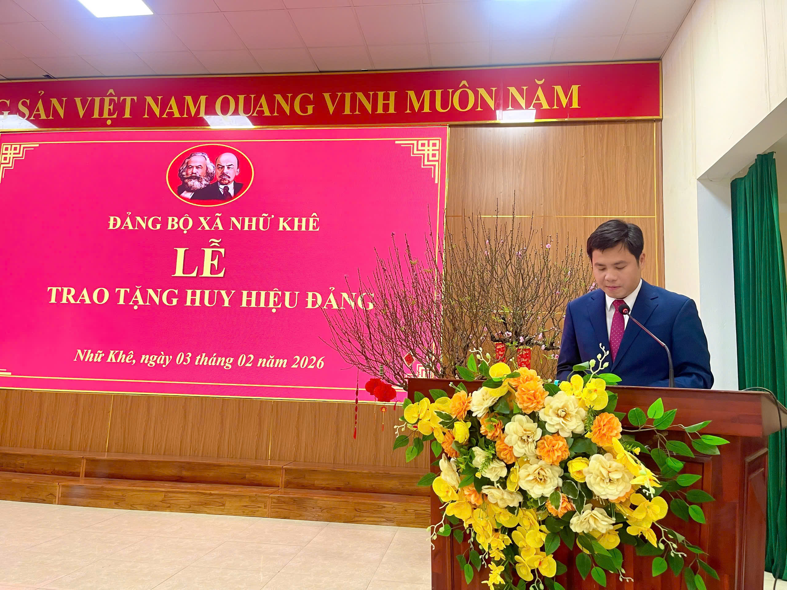 Phát biểu tại buổi lễ, đồng chí Nguyễn Hữu Phương bày tỏ sự trân trọng, chúc mừng các đảng viên vinh dự được trao tặng Huy hiệu Đảng; đồng thời khẳng định việc trao tặng Huy hiệu cao quý của Đảng là niềm vinh dự, tự hào không chỉ của cá nhân các đảng viên mà còn là niềm vui, niềm tư hào của Chi bộ các đồng chí đang sinh hoạt nói riêng, của Đảng bộ xã Nhữ Khê nói chung và đối với từng gia đình các đảng viên. Đồng thời, đó là sự ghi nhận của Đảng đối với quá trình phấn đấu, tận tụy, rèn luyện bền bỉ và những đóng góp to lớn của các đồng chí cho sự nghiệp cách mạng vẻ vang của Đảng.
